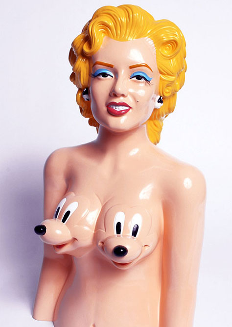 Combining two iconic Hollywood stars, pop artist Ron English has created a limited edition “bust” of Marilyn Monroe (click here to see full sculpture of image above). For more info on these works of art, see the Toys R Evil blog.
