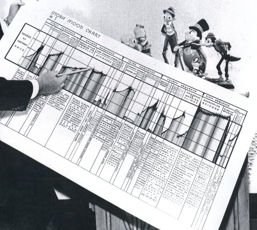 Well, I don’t know if it was a secret, but here’s a rare publicity photo of Dave Fleischer with a “story mood chart” indicating story beats for Mr. Bug Goes To Town (1941). Click the photo above to see a close up of the chart. I don’t know if they really used anything like this in production, but however they did it, they created a masterpiece - and that’s all that matters.